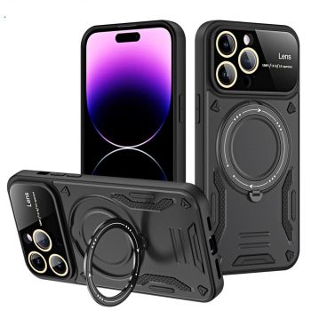Heavy Duty Camera Lens Protection Case with Kickstand Ring for iPhone