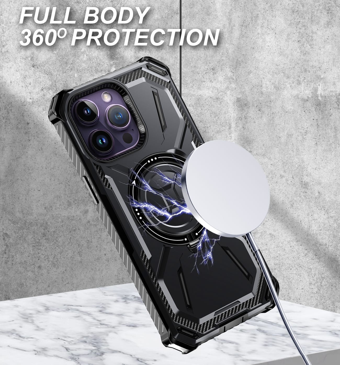 - MagSafe Compatible: Features a built-in magnetic ring for seamless wireless charging and secure attachment to MagSafe accessories.