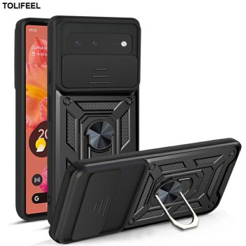 Rugged Slide Camera Lens Case With Metal Ring Holder For Google Pixel 6 and 6 Pro