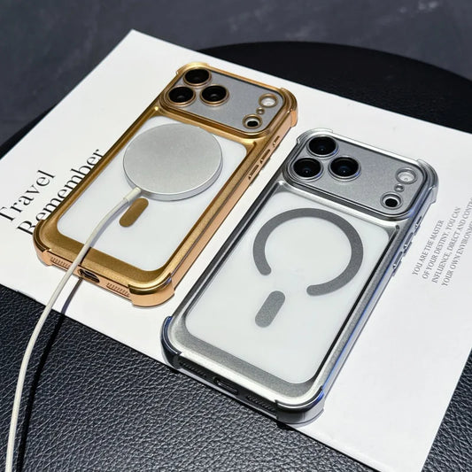 Clear Magnetic iPhone Case with Alloy Stand & Anti‑Drop Bumper